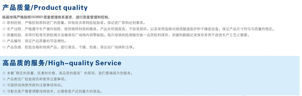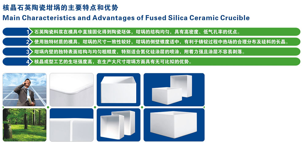 • 石英坩堝是太陽能多晶硅鑄錠生產(chǎn)過程中用來裝載多晶硅料、在1560℃高溫下使之融化結(jié)晶生產(chǎn)出多晶硅鑄錠的容器。核晶坩堝采用特有的注凝工藝,使用安全性更高,在大尺寸坩堝、高純坩堝、RTU坩堝、黑砂全熔坩堝、鑄錠單晶坩堝等領(lǐng)域處于行業(yè)重要地位。