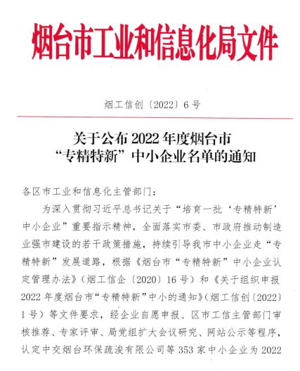 2022年4月22日,煙臺市工業(yè)和信息化局公布了2022年度煙臺市“專精特新”中小企業(yè)認(rèn)定名單,煙臺核晶陶瓷新材料有限公司憑借自身在新材料領(lǐng)域的專業(yè)化技術(shù)支持、高品質(zhì)特色化的產(chǎn)品服務(wù)、雄厚的自主研發(fā)和創(chuàng)新能力、精細(xì)化的管理水平從眾多企業(yè)中脫穎而出,被認(rèn)定為煙臺市“專精特新”中小企業(yè)稱號。
